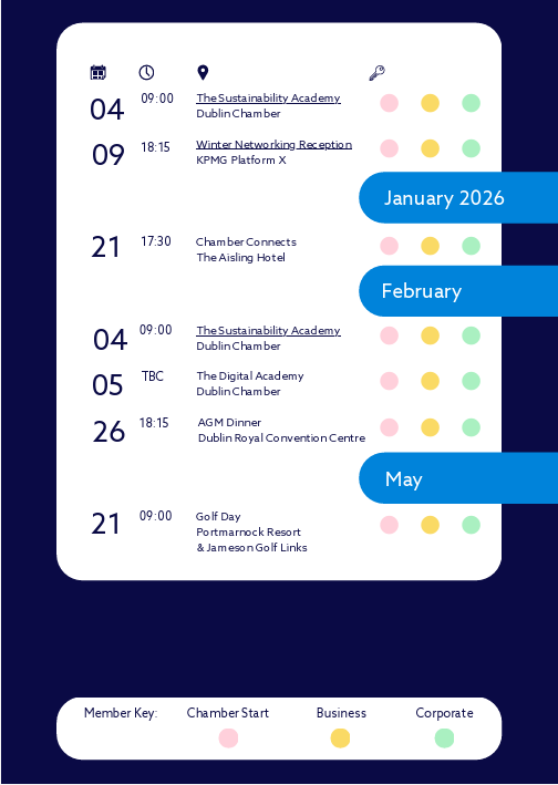 For all events queries, please contact Carol Ryan carol@dublinchamber.ie or (01) 644 7200.